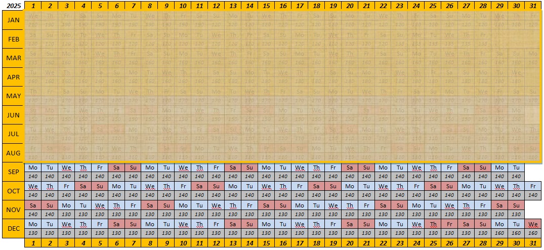 - Prices (€-euro) refers the rent of the whole apartment per day in STANDARD rate